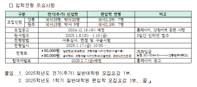 2025학년도 전기 일반대학원 입학전형 및 편입학 추가모집 안내